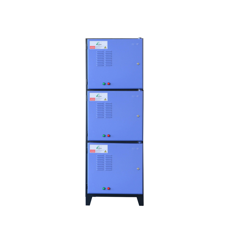 近年來,由于人們對環(huán)保的要求越來越高,工業(yè)方面,職工對環(huán)保的要求也有所重視,特別是加工機(jī)床帶來的油霧污染,給人們的身心健康帶來危害,所以加強(qiáng)對環(huán)保的空氣凈化要求也越來越得到重視。該設(shè)備是利用陰極在高壓電場中發(fā)射出來的電子,以及由電子碰撞空氣分子而產(chǎn)生的負(fù)離子來捕捉油霧顆粒、粉塵,使油霧顆粒、粉塵帶電,再利用高壓電場的作用,使帶電油霧顆粒、粉塵被陽極所吸附,達(dá)到除油霧、煙塵的目的。由于電子的直徑非常小,煙塵粒子對于它們來說,是龐然大物。而且電場中電子的密度很高(達(dá)到1億/cm3的 數(shù)量級),可以說無所不在。處在電場中的粉塵很容易被電子捕捉(即荷電)。粉塵在電場中的荷電是遵循一定機(jī)理的必然現(xiàn)象,而不是簡單的偶爾碰撞引起的。其中包括電場荷電和擴(kuò)散荷電。電場的設(shè)計使油霧、煙塵的運(yùn)動速度只有每秒一米左右,一般在零點幾秒便能使煙塵粒子荷上足夠的電荷,帶電粒子在高壓電場中會受到電場力(庫倫力)的作用,其結(jié)果是煙、塵被吸附到陽極上。因此除油霧煙塵的效率非常高,而且特別適用于捕捉粒徑較小,或者重量較輕的油霧煙塵。