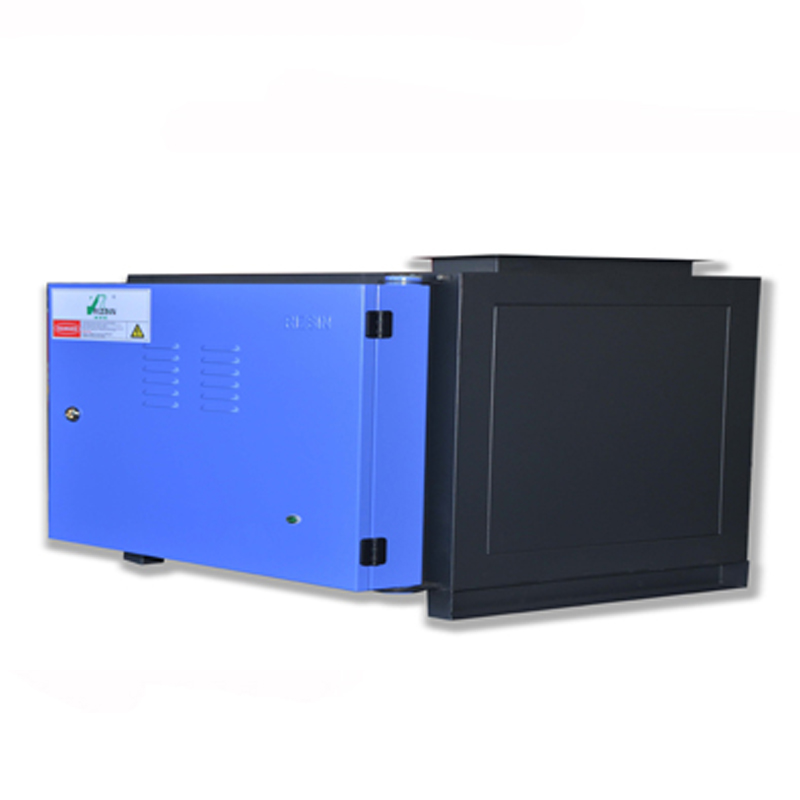 本產品采用靜電凈化作用。含煙廢氣被風機吸入凈化器后,首先進入初級裝置——初效過濾器,采用物理碰撞及吸附凈化技術,其特殊結構能對大粒徑污染物進行分級物理分離,并且均衡整流。分離出的大顆粒油滴在自身重力的作用下流入油槽排出。剩余的小粒徑污染物進入次級裝置——高壓靜電場,靜電場內部分兩級,第一級為電離區,強電場使微粒荷電,成為帶電微粒,這些帶電微粒到達第二級集塵器后立刻被收集電極吸附。同時,高壓靜電場有效地降解有害成份,起到消毒、除味作用。最后通過濾網格柵,潔凈的空氣隨風機排入室內,完美地解決了客戶的機床油霧凈化難題。